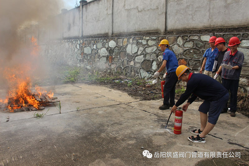 2023年7月22日,岳陽筑盛閥門管道有限責(zé)任公司組織進(jìn)行了消防應(yīng)急演練,本次演習(xí)主要演練四個(gè)方面:1、險(xiǎn)情應(yīng)急指揮、2、緊急疏散、3、緊急集合、4、滅火器具的選擇與使用。